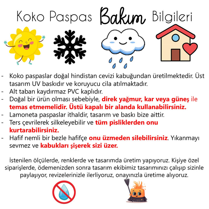 Malzeme: Hindistan cevizi liflerinden üretilen koko paspas